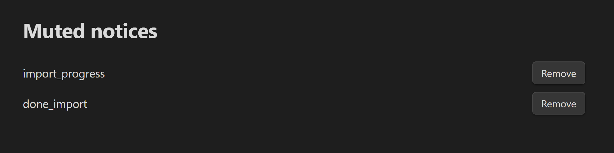 Muted notices will appear at the bottom of the Smart Connections settings. Use the "Remove" button to un-mute a notice.