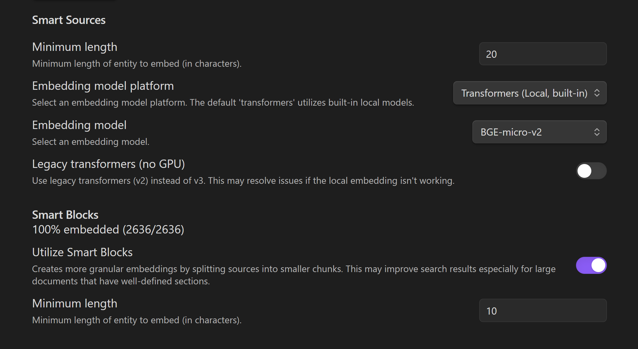 Example: BGE-micro-v2 is lightweight and fast, suitable for small-to-medium vaults.