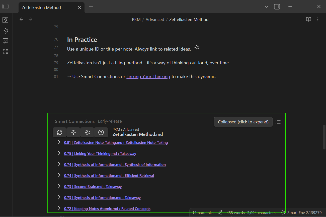 Connections Early brings next generation Smart Connections features to Obsidian insiders before they ship in the stable channel. It layers inline decorators, a footer panel, and configurable ranking on top of the Smart Connections core so you can see the right notes at the right time without leaving the editor.